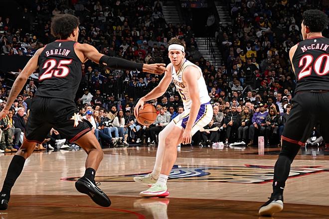 本场比赛中,湖人的先发后场球星奥斯汀-里夫斯(Austin Reaves)的表现实在是糟糕透顶,完全没有发挥出自己的特点。里夫斯全场出场39分08秒,投篮16中3,三分线外6中2,罚球5中3,得到了11分4篮板5助攻1抢断1盖帽的数据,还有2次失误,正负值为+1。里夫斯在进攻端的效率简直是惨不忍睹,他得到了大量的出场时间和出手次数,他在场上的球权并不少,然而他的进攻效率却如此糟糕,确实是无法令人感到满意的,也是远远低于他本人的正常水准的。里夫斯在其他方面的能力比较有限,也同样没有办法起到更大的作用。不夸张地说,如果里夫斯能够正常发挥,能够保持稳定的手感,湖人在本场比赛中应该是能够更加轻松顺利地拿下胜利的,结果他完全没有做到这一点,球队最终也是经历了各种波折才在最后时刻锁定了这场胜利。