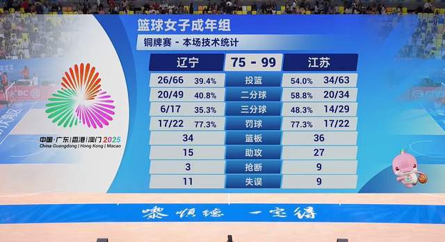 11月15日,全运会女篮成年组来到了最后一个比赛日,在铜牌争夺战中,江苏女篮以99-75大胜辽宁队,从而拿到了第三名。此前结束的男篮成年组,辽宁队在铜牌争夺战中,不敌四川,屈居第4名。没心动啊,辽宁女篮也是一样,同样是第4名。至此,本届全运会女篮成年组首枚奖牌产生了。