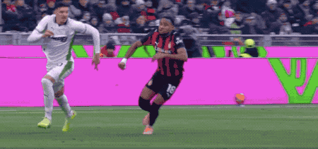 第88分钟,劳里恩特的射门击中立柱弹了出来,又砸在迈尼昂的身上,米兰门前险象环生。