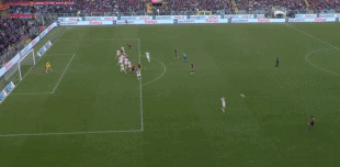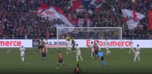 在意甲第11轮热那亚主场对阵佛罗伦萨的比赛中,热那亚前锋洛伦佐-科隆博打进一粒倒地情况下的进球。